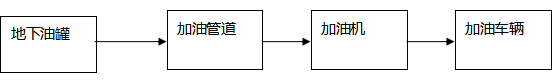 加油工藝:加油作業(yè)時(shí),采用潛油泵提供的動(dòng)力,油品通過加油管道至加油機(jī),進(jìn)入受油容器。同時(shí),加汽油作業(yè)時(shí),有油氣回收回收系統(tǒng),汽油蒸汽通過油氣回收管道回至汽油罐。具體流程見下圖: