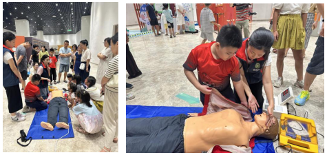 來自南昌市安全生產宣傳教育警示基地的專業安全教員用通俗易懂的方式,向大家講演了心肺復蘇術與AED的理論要點和操作流程,并對現場的小朋友手把手指導,詳細講解具體操作步驟及注意事項,細心糾正不規范動作。孩子們學習熱情高漲,紛紛加入到實踐隊伍中,努力掌握專業的急救知識和技能,提高應對突發事件的現場救護能力。